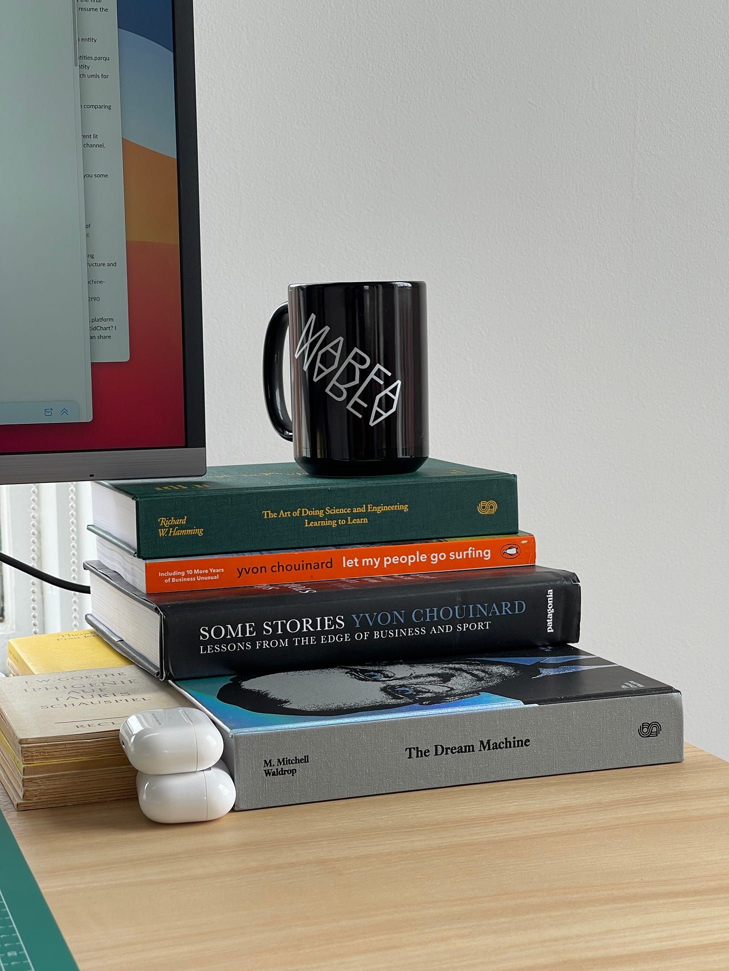 Computer is an apple silicon mac mini buried inside of a fake book on the right.