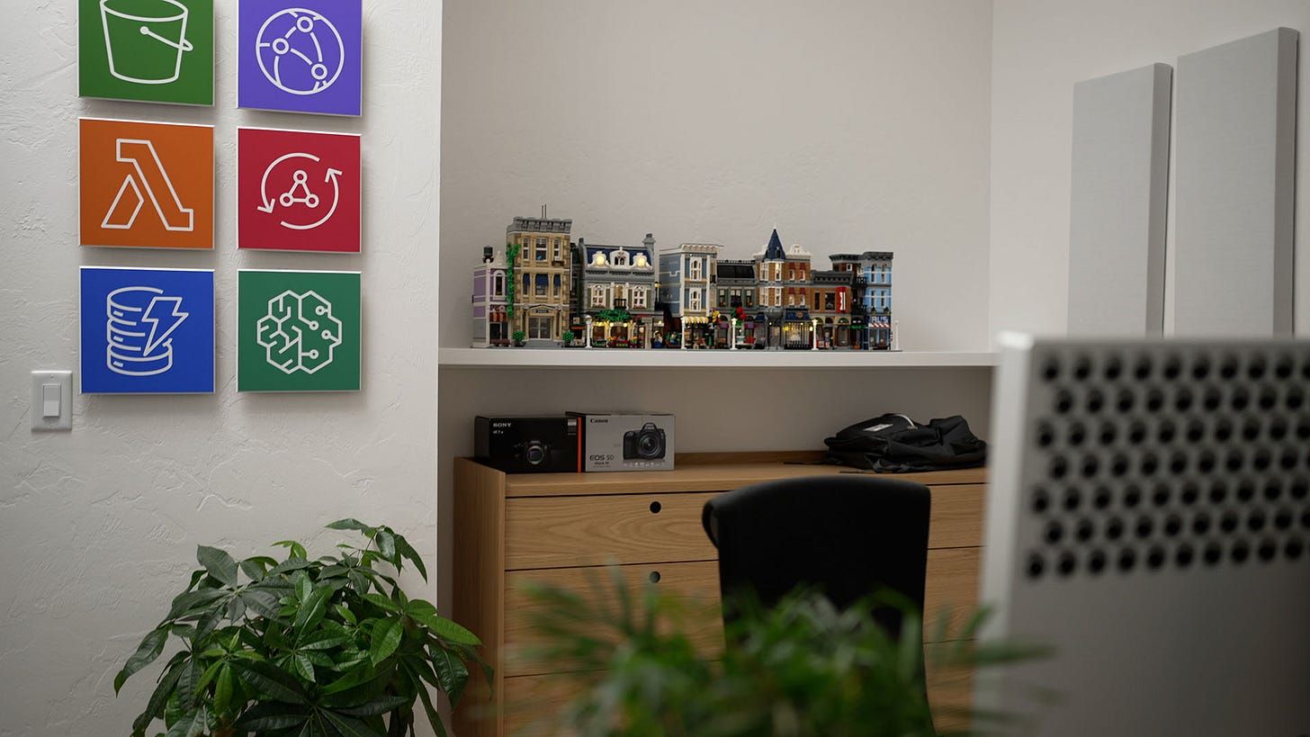 LEGO modular series buildings are the highlight of my backdrop and feature custom lighting from lightmybricks.com. I've lit half of the buildings, so far, as it's super labor intensive: I'm drilling holes through bricks to run the wires inside the walls so that no wires or lighting components are visible. The end result looks great, but it's taken 100+ hours thus far, so it's a bit of a long term hobby.