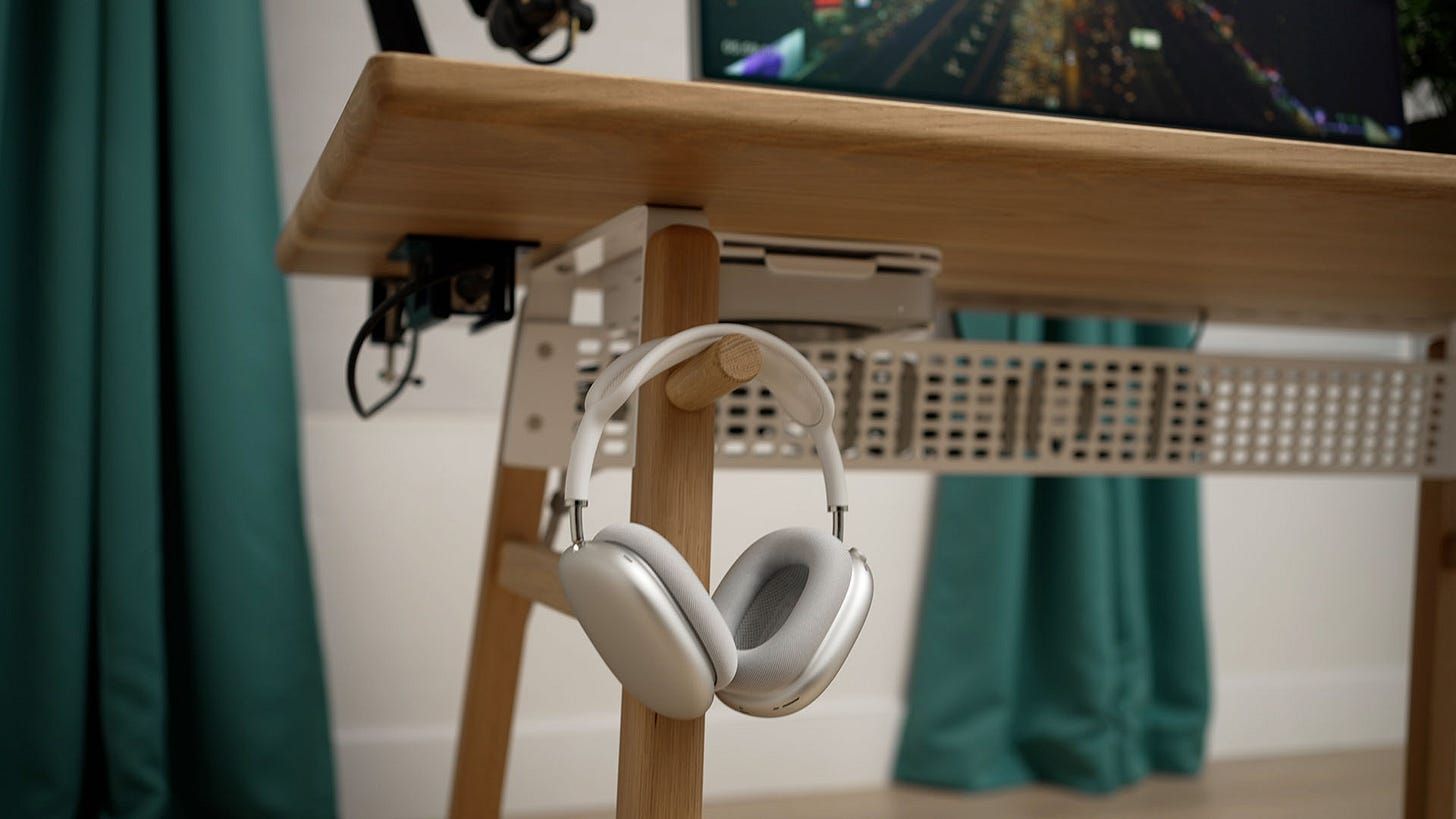 Artifox Desk (White Oak) This desk is so thoughtfully designed, and it ships in packaging that Apple would be proud of. The cable management features are exceptional and I also love the headphone pegs.