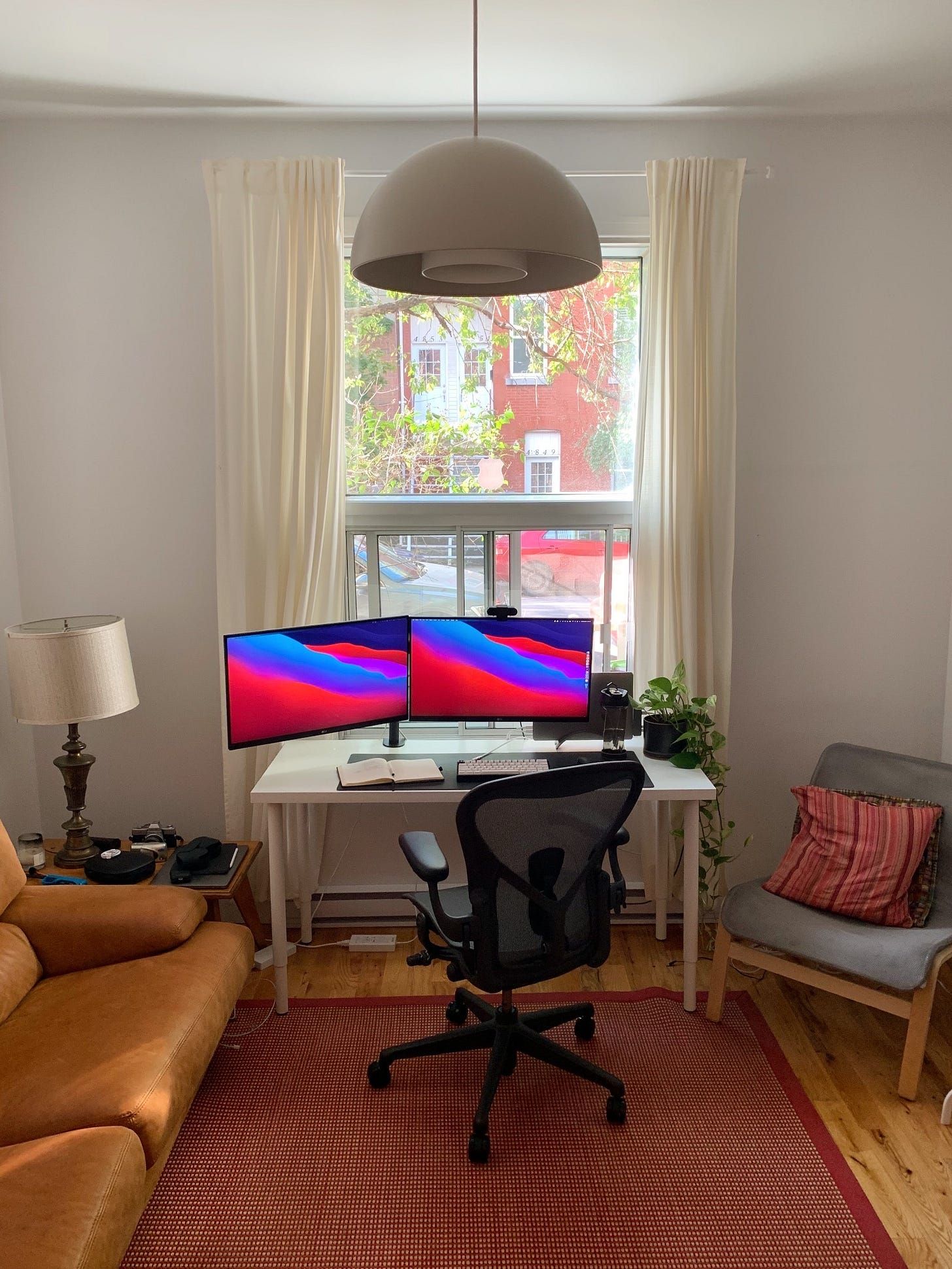 27" LG 4K Monitors - I shifted to a dual monitor setup for being in calls and sharing my screen at the same time, which I'm doing very often as a designer. However, I did appreciate that one monitor made it easier to focus on one thing at a time when working, with less distractions.