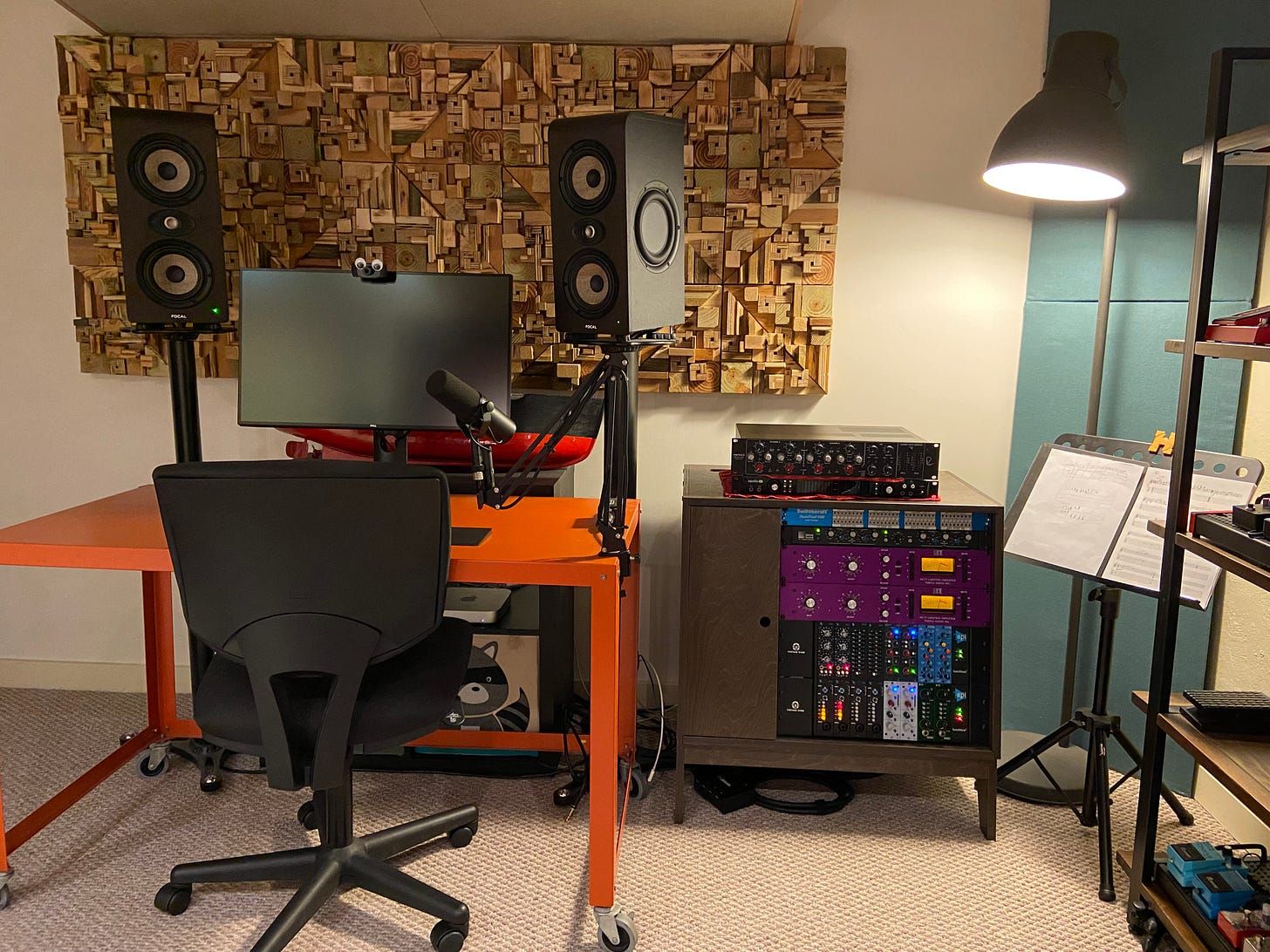 I set up a room in the basement because no one else wanted to go down there! At least I can track audio there at late hours, and I spent a lot of time acoustically treating it. Square rooms are the worst, but this one came a long way.
