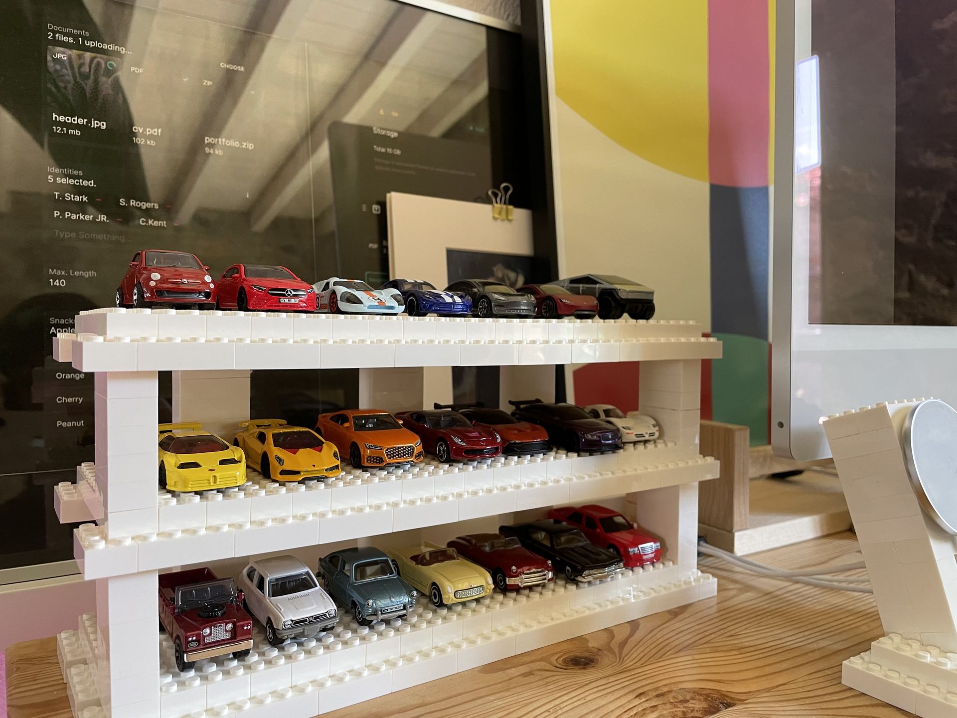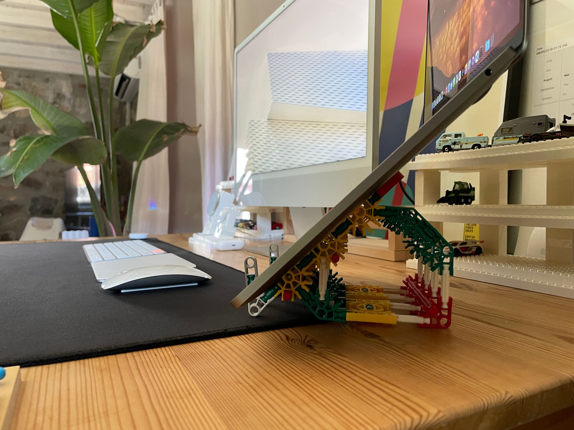 My custom Apple Watch and "Magsafe Morty" Lego chargers and K'nex MacBook Pro stand. (By the way, those Lego and K'nex pieces are from my childhood, you can notice there are several bite marks on them :) )