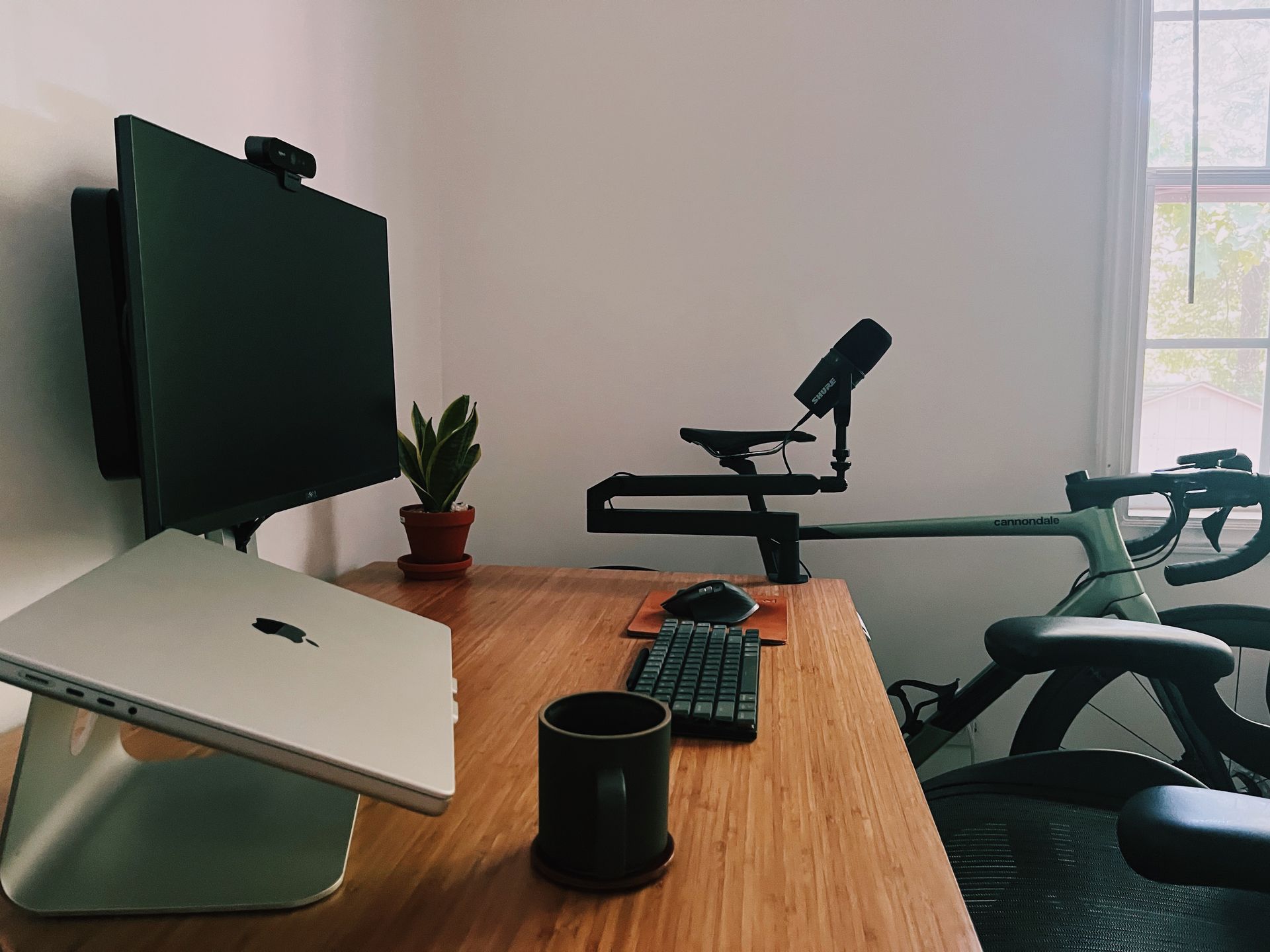 On days I don’t ride, I usually walk to a nearby coffee shop and work on side projects before shifting into my day job.