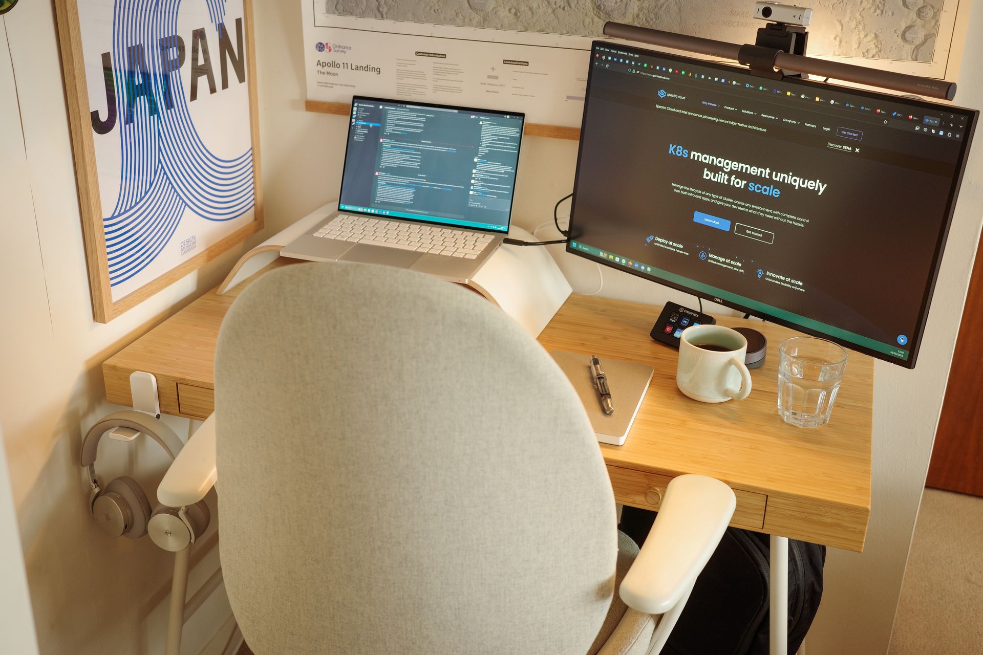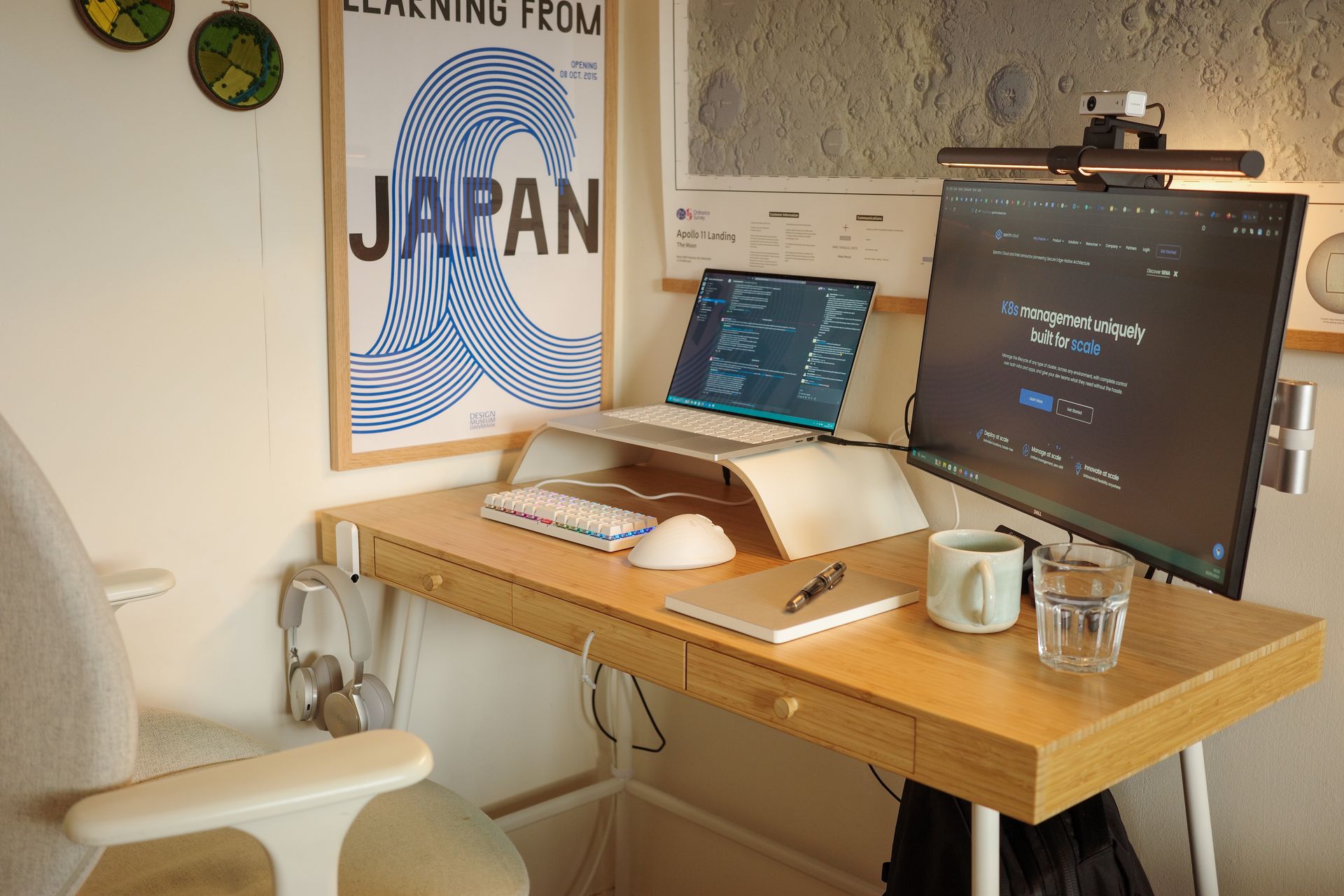 But for me being fully remote is fantastic. I get to avoid the cost and timesoak of the commute — I’ve spent two hours a day before in the car or on a train, and I don’t miss it. Instead I get to pop out for the school run, answer the door to couriers, and most importantly really set up my space for productivity.