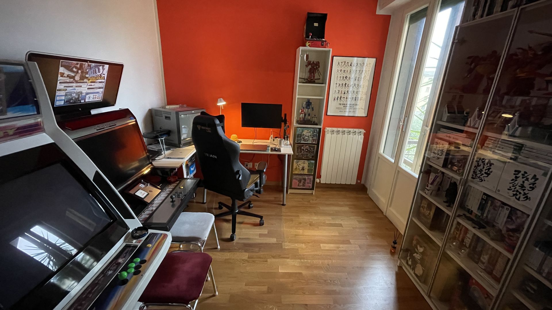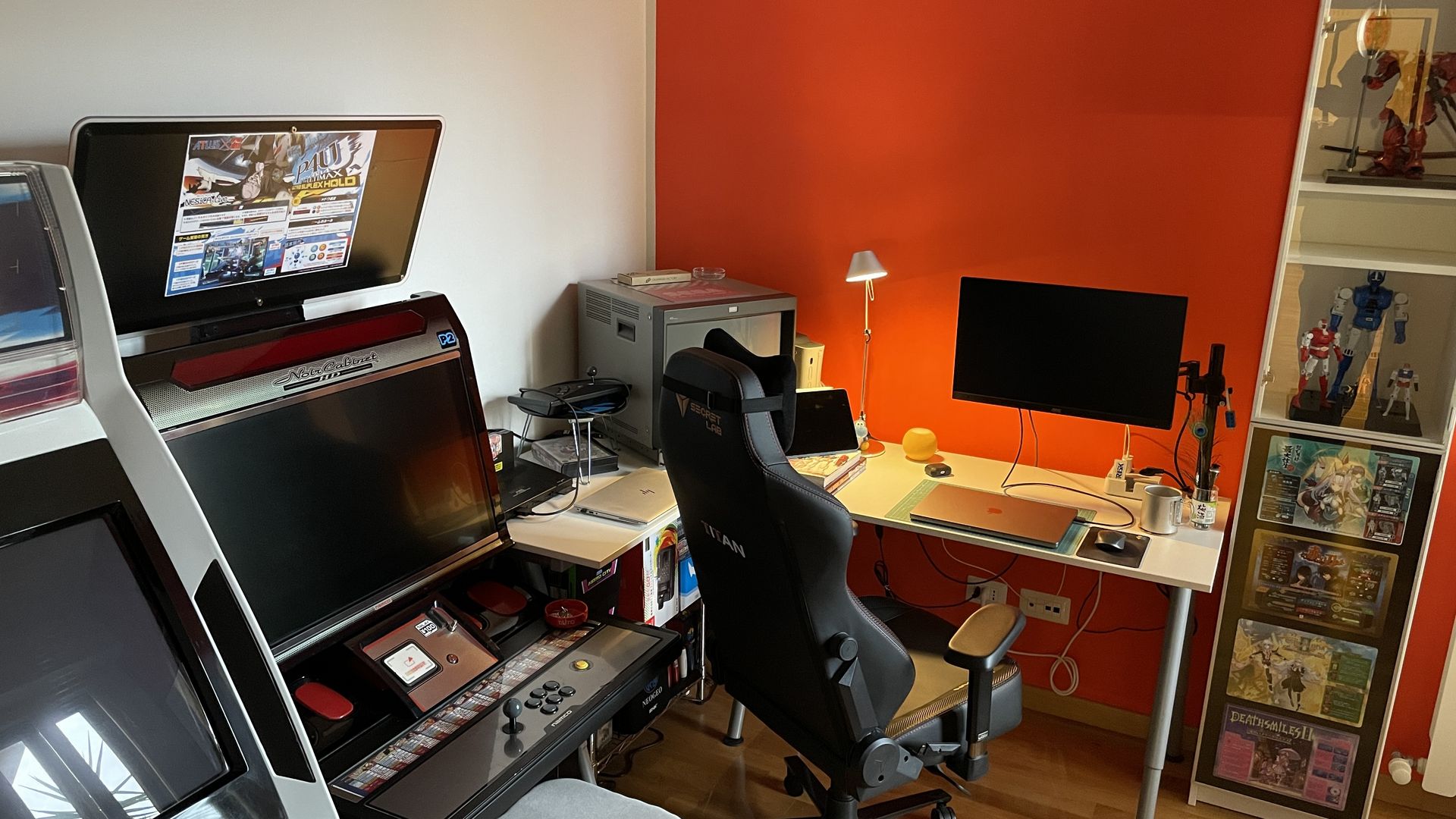 As you might guess from the photos, the room of his workspace was originally intended to be his private game room.