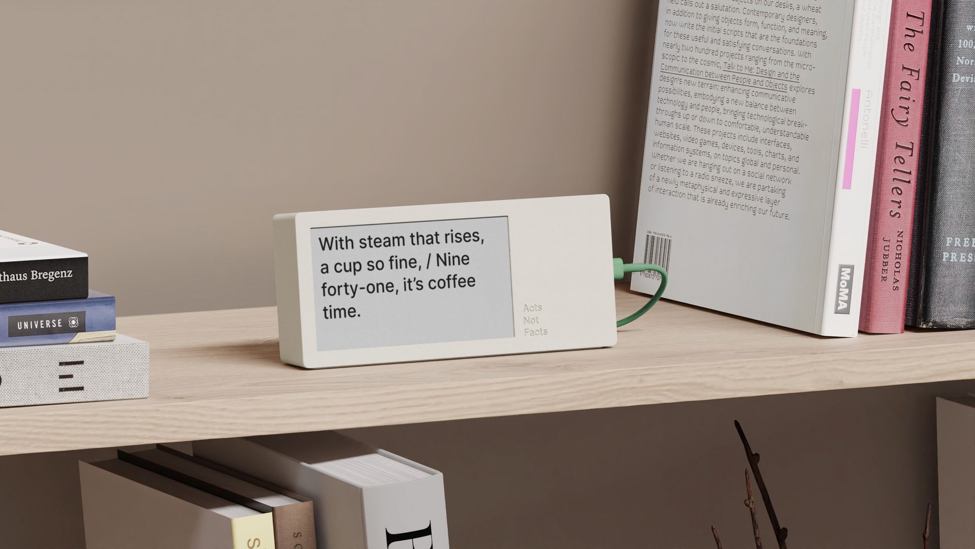 Through that, he is also the inventor of Poem/1, an AI-powered rhyming clock. How does it work? It tells the time with a brand new poem every minute, composed by ChatGPT. It’s sometimes profound, and sometimes weird, and very occasionally it fibs about what the actual time is to make a rhyme work... It has a cute e-paper screen.