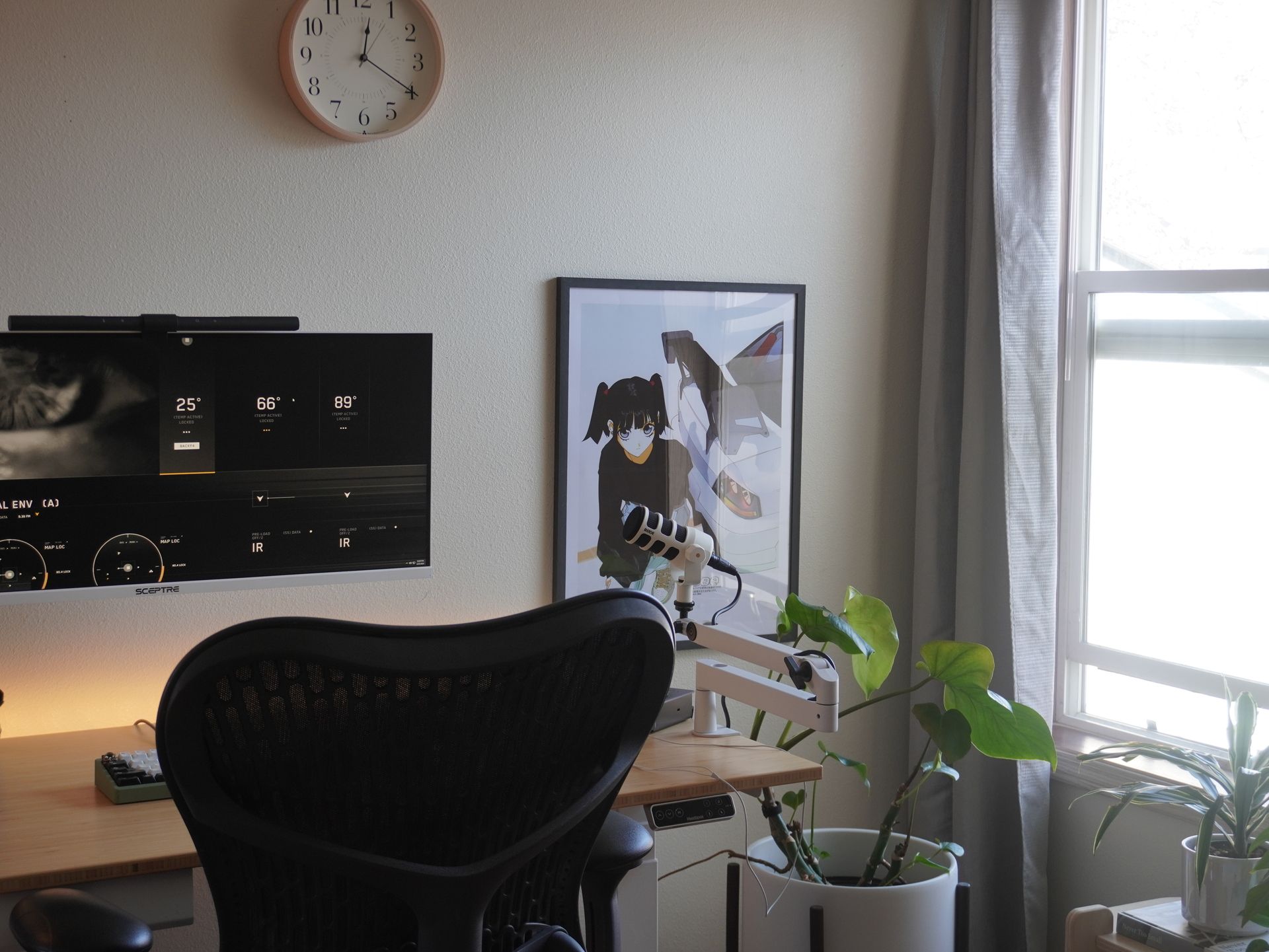 Monitor: 34in Sceptre 144hz IPS, mounted on the Ergotron HX monitor arm